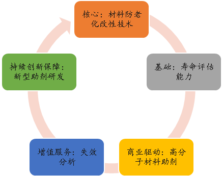 ??? 天罡公司以材料防老化技術(shù)為核心,以化學(xué)合成與產(chǎn)業(yè)化技術(shù)、材料老化預(yù)防老化配方技術(shù)、壽命評(píng)估與失效分析,以及化學(xué)及儀器分析技術(shù)為支撐,致力于解決客戶及行業(yè)中迫切需要解決各類技術(shù)問(wèn)題。天罡應(yīng)用技術(shù)研發(fā)驅(qū)動(dòng)的商業(yè)模式
